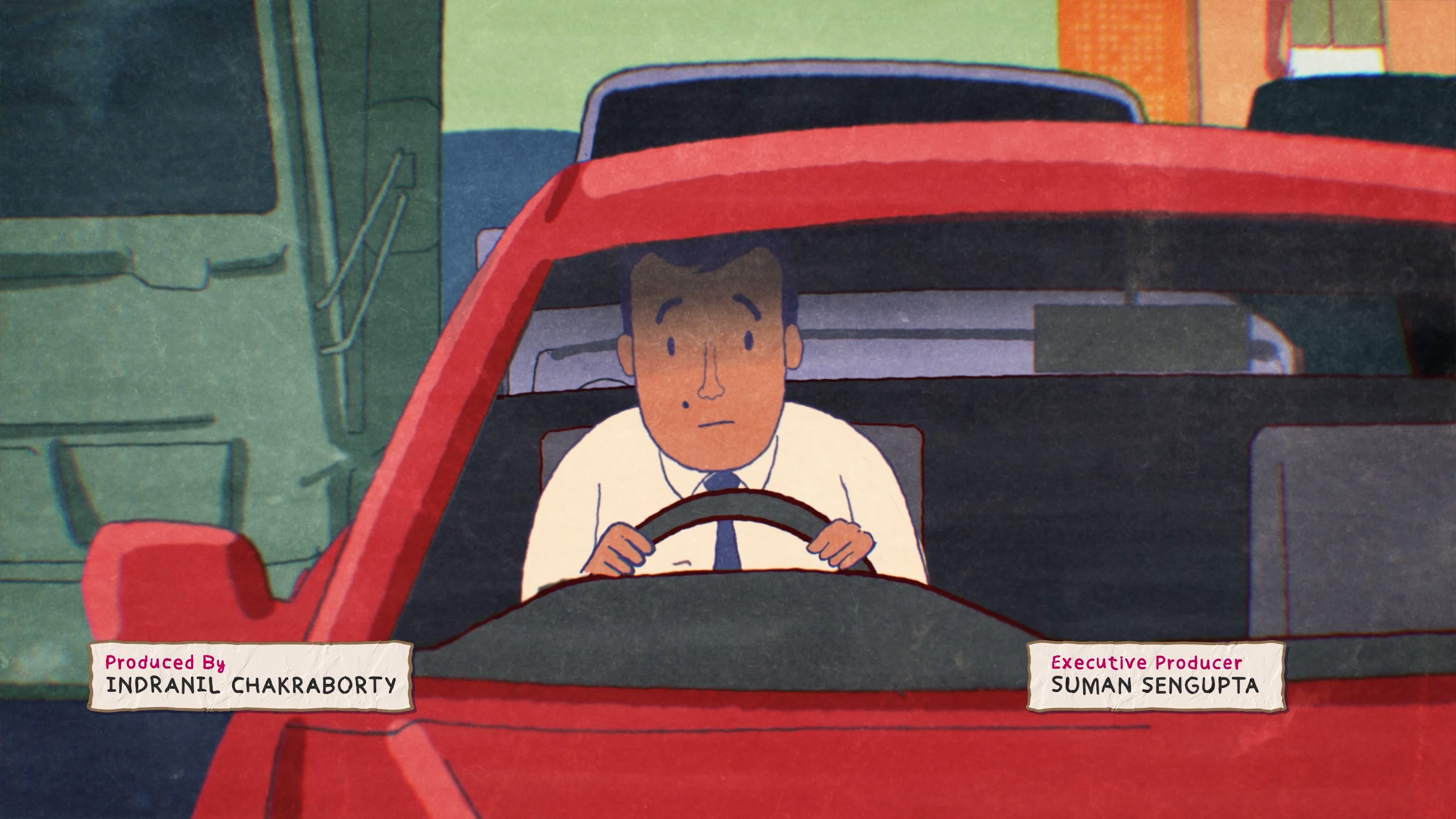 The idea was to show a common man attempting to cope with the many trials and tribulations of modern-day life. As he comically gets screwed at every turn, he finally finds peace in the afterlife. This cartoon depiction of the troubles of the common man hints at a darker truth, painted with happy colours to represent our obliviousness to it.