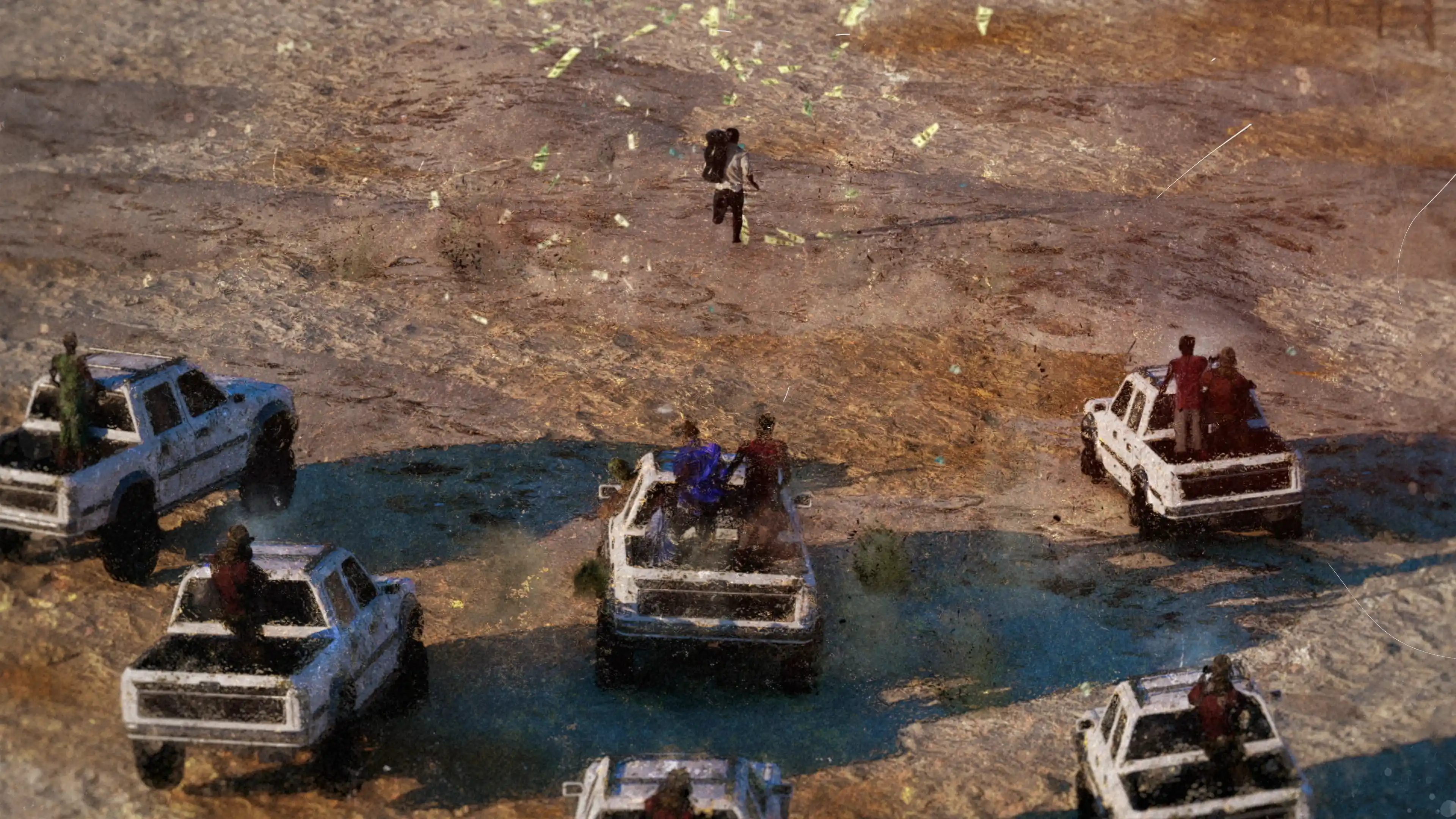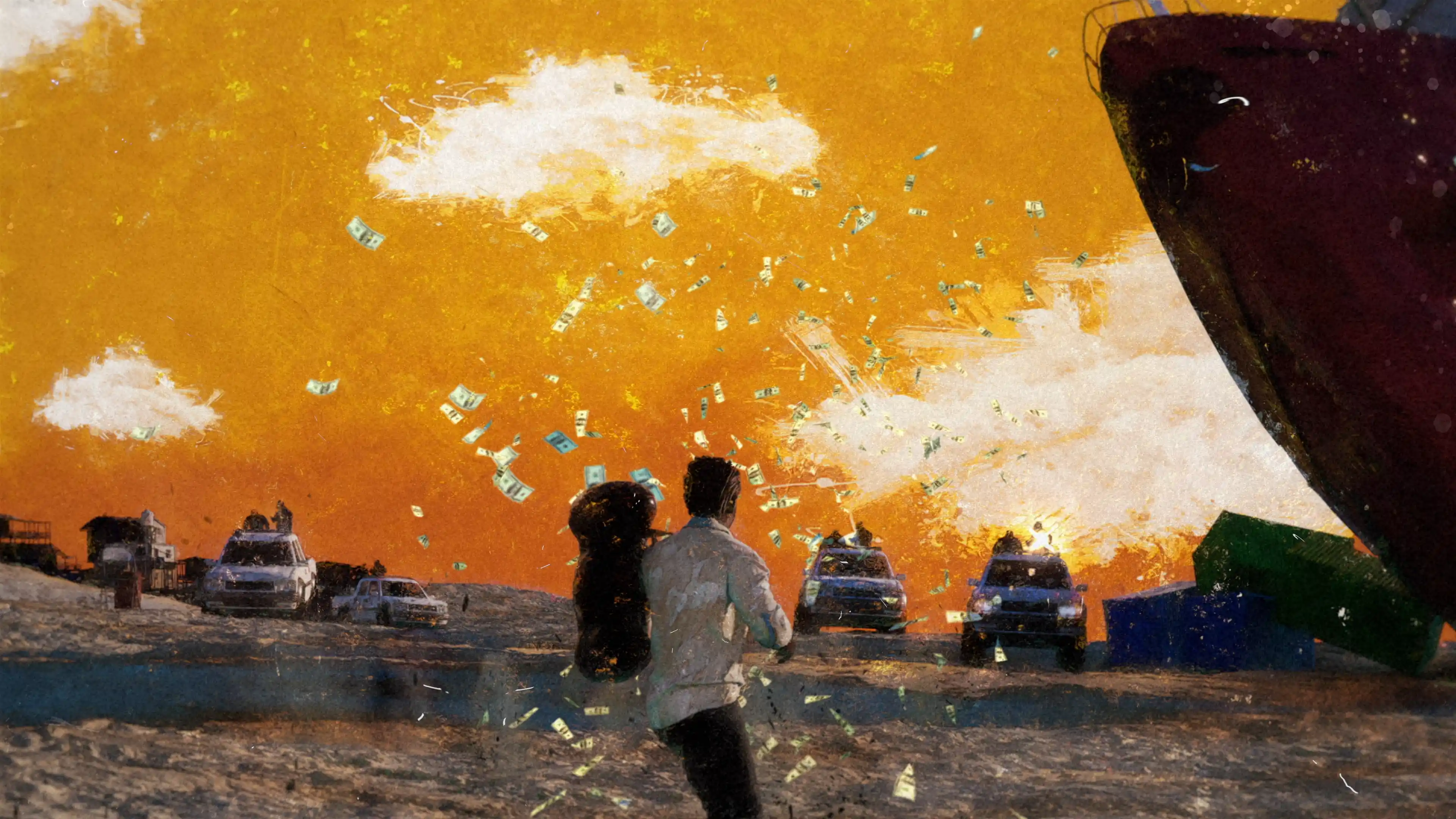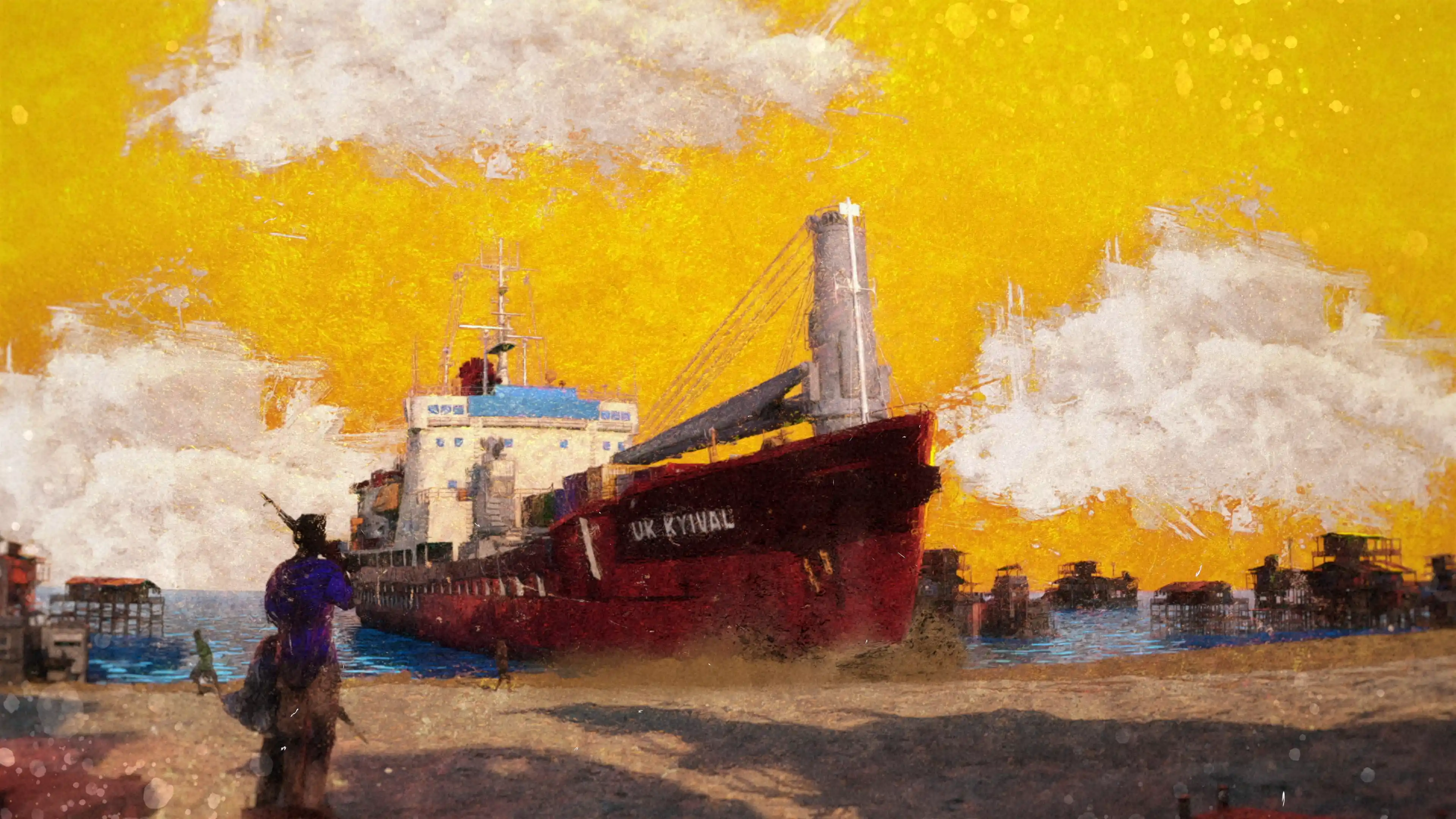 For the title sequence, the idea was to show the pirates of Somalia as hunter-gatherers who hunt ships to sustain themselves. Their situation is so dire and desperate that hijacking cargo ships is a way of life to them more than it is a crime. The protagonist Vikrant gets caught in this cyclical violence and ends up with a target on his back. That's just how it is in Somalia, eat or be eaten.