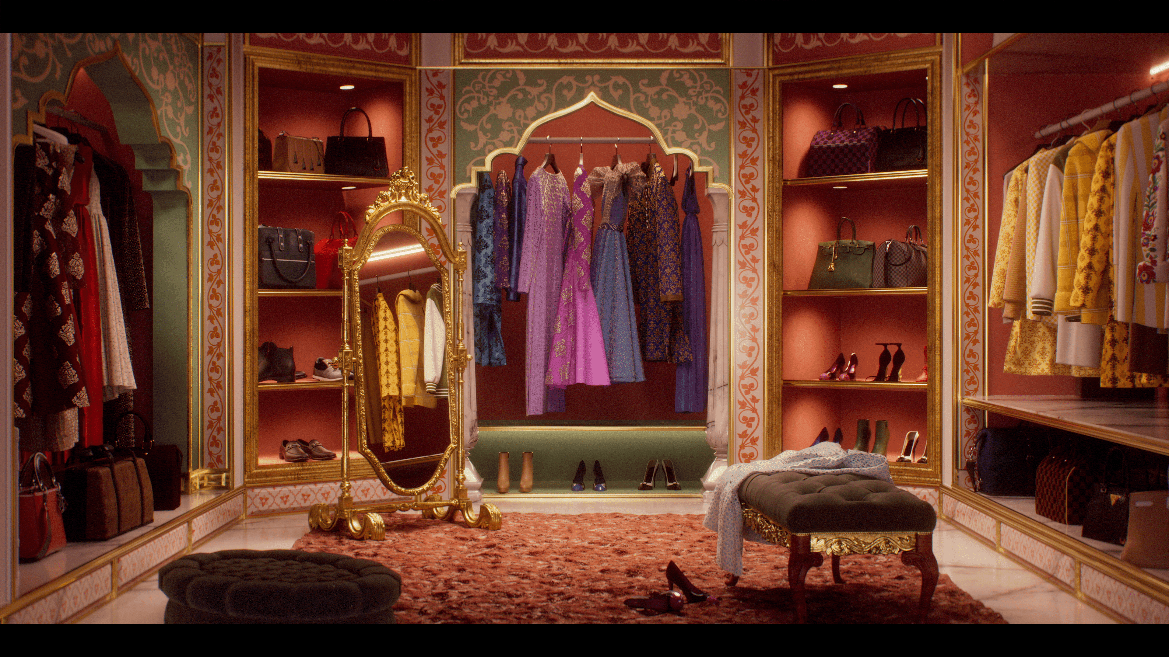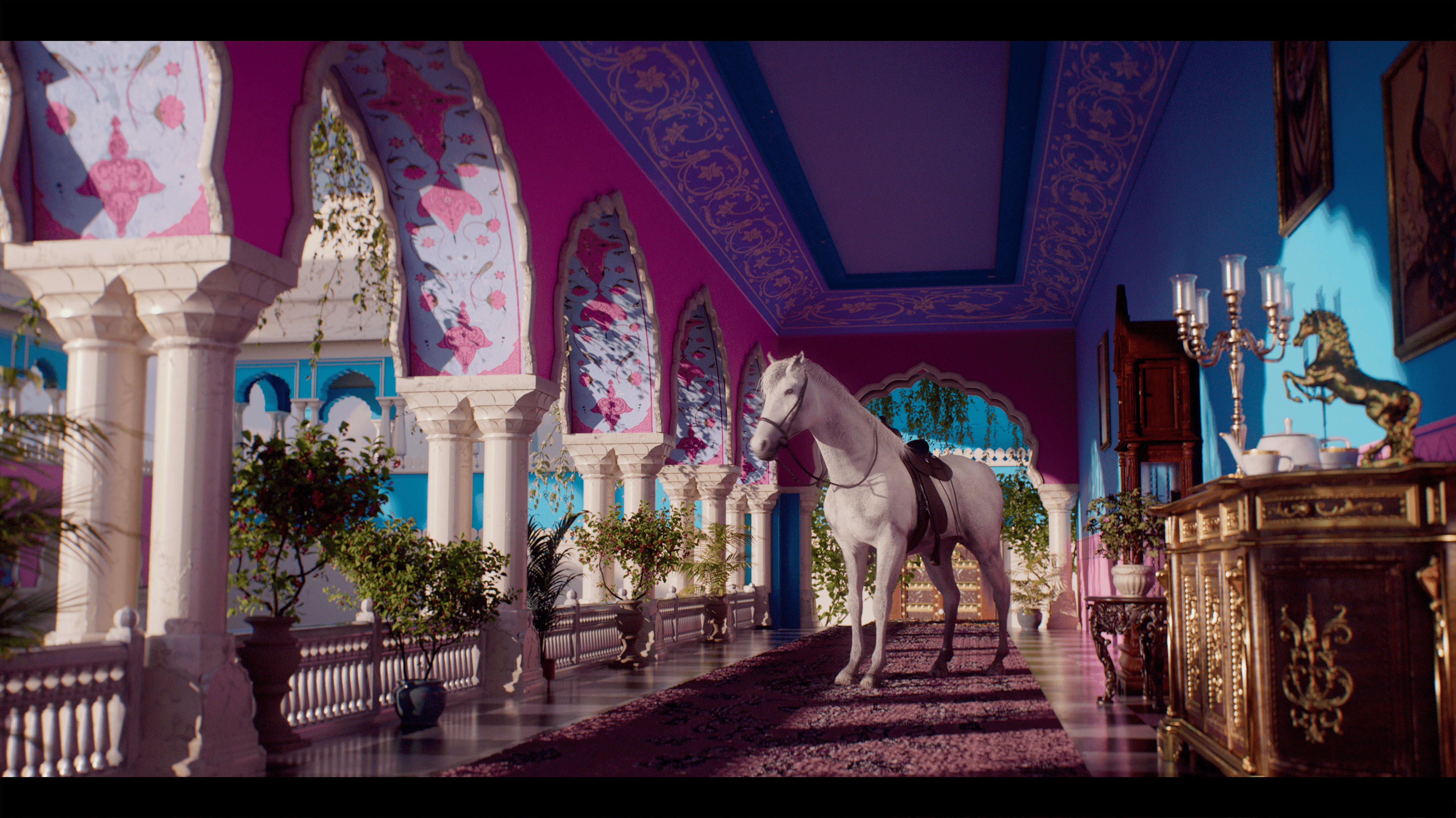 For the title sequence, we imagined a palace caught in a state of transformation. Its regal, ageing interiors shift and evolve, blending heritage with bursts of modernity. This visual metamorphosis reflects the show's central conflict, where royalty is forced to adapt or be left behind.